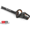 Easily shape hedges and bushes with the lightweight 18V battery hedge trimmer. Designed for small spaces, storage is made easy with the included hook. Double-action cutting blades, powerful motor and 50cm long cutting deck can handle branches up to 23mm. Designed with a smart leaf catcher to collect the hedge clippings whilst trimming to reduce clean up work. Ergonomic soft grip handle and improved safety with the automatic shutdown when left unattended. Part of POWER FOR ALL battery system.