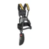 Double elite harness for brushcutter with side hip pads.