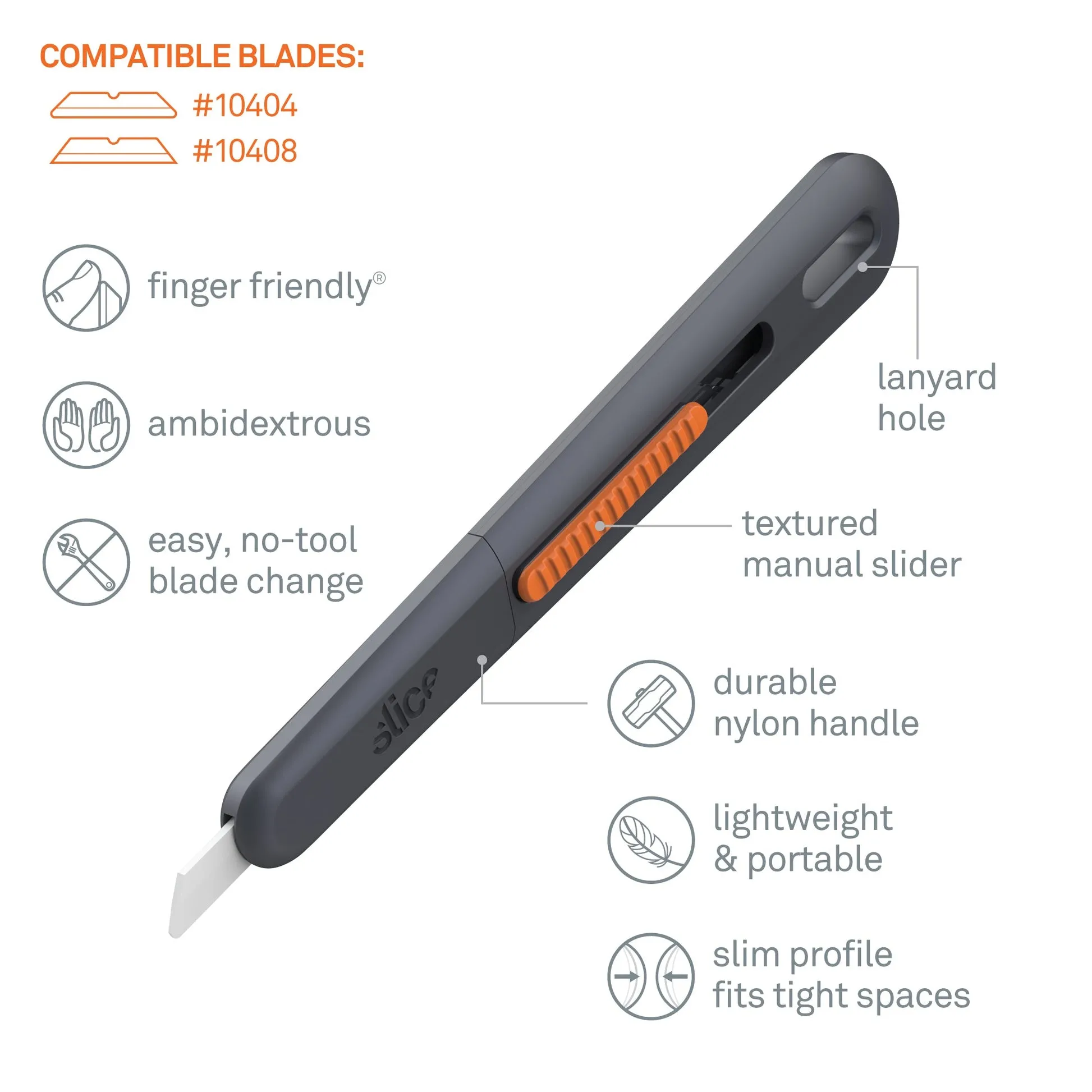 Wanting to achieve a precise cut in a small space or struggling to see the blade with your current tool? Whether you’re an artist, a professional cake decorator, or simply trying to open your supplies safely, the Slice Manual Slim Pen Cutter makes cutting easy.