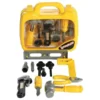 This awesome toolset includes a wrench, levels, pliers, hammer, screwdriver and more, Packed in a 10" x 8" x 4" see-through carry case. My workshop carrying case is jam-packed with all the tools that dad would have more! Featuring 14 pieces of tools including a hammer, pipe wrench, handle of screwdriver with 3bits, t-square, lever, nail, 2sets of nut & bolt and plier. There is no end to the fun of make-believe building. Includes hammer, adjustable wrench, screwdriver and 3 detachable plastic bolts. Plastic toolset for children ages. Packed in a 10" x 8" x 4" see-through carry case.