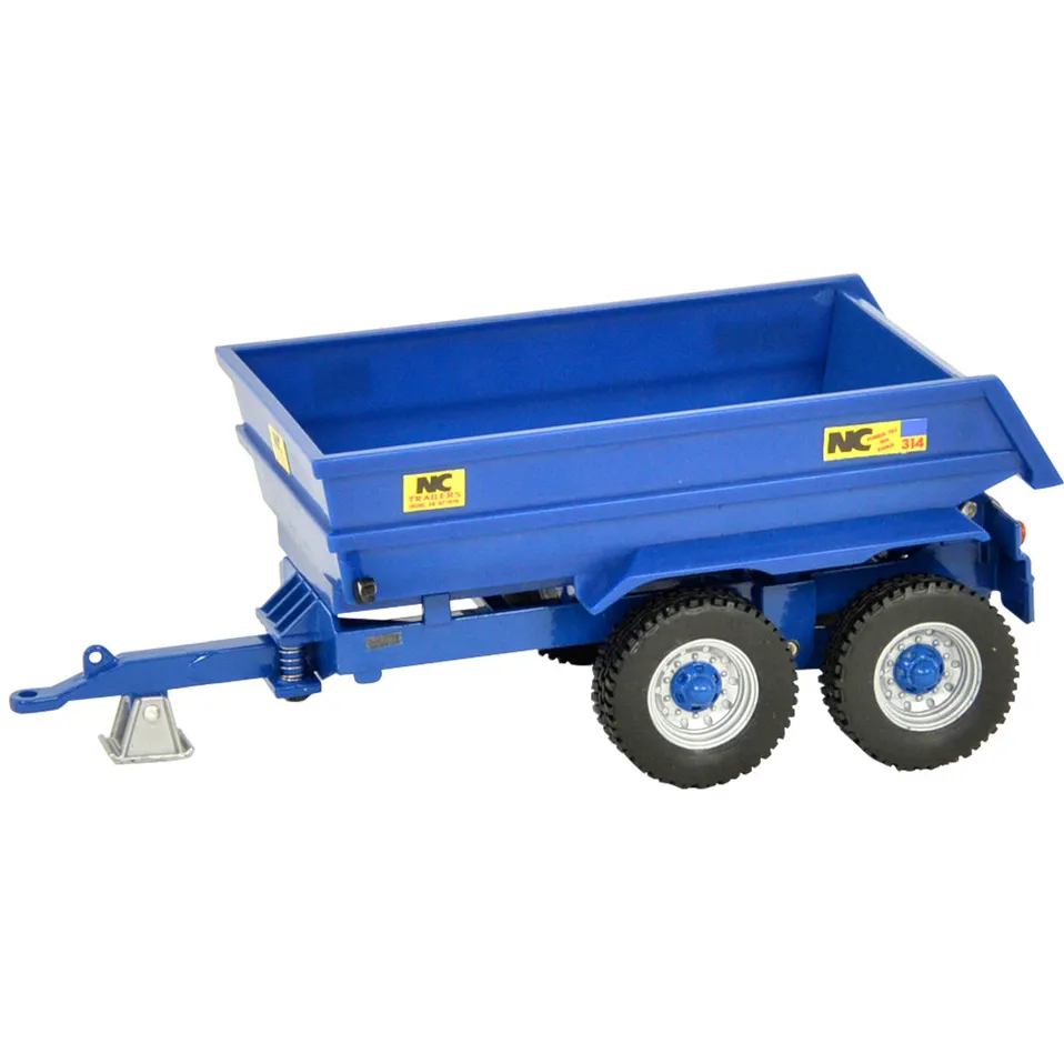 Made primarily of die-cast metal with plastic parts for durability and realism, the tractor features rolling wheels with soft tyres, detailed interior cab, and rear hitch for trailer attachment. The trailer complements the set with a tipping function for added play value.