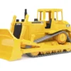 The plough blade of the Cat bulldozer lifts up/down, it can be tilted and locked in position. The loosening rake can also be lowered. The Cat bulldozer uses crawler tracks for ease of locomotion.