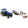Die cast metal model New Holland T8.390 tractor with Ifor Williams stock trailer and two cows. Tractor with removable cab, original decal detail, front grill opens to show engine detail, front hitch, rear 3-point hitch, front suspension, front wheel steering and rolling wheels with tread detail. Livestock trailer with removable roof, drop down tailgate / loading ramp with side rails and towbar hitch. Supplied with tractor driver figure and two cows. Realistic mud effect.