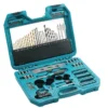 The Makita P-90370 120 Piece Drill and Bit PRO Accessory Set is an extensive accessory kit designed to handle a wide variety of tasks for professionals and DIY enthusiasts alike. Featuring 120 pieces, this set includes screwdriver bits, brad point bits, masonry drills, high-speed steel (HSS) bits, nutdrivers, holesaws, and more, making it an all-in-one solution for your drilling and driving needs.